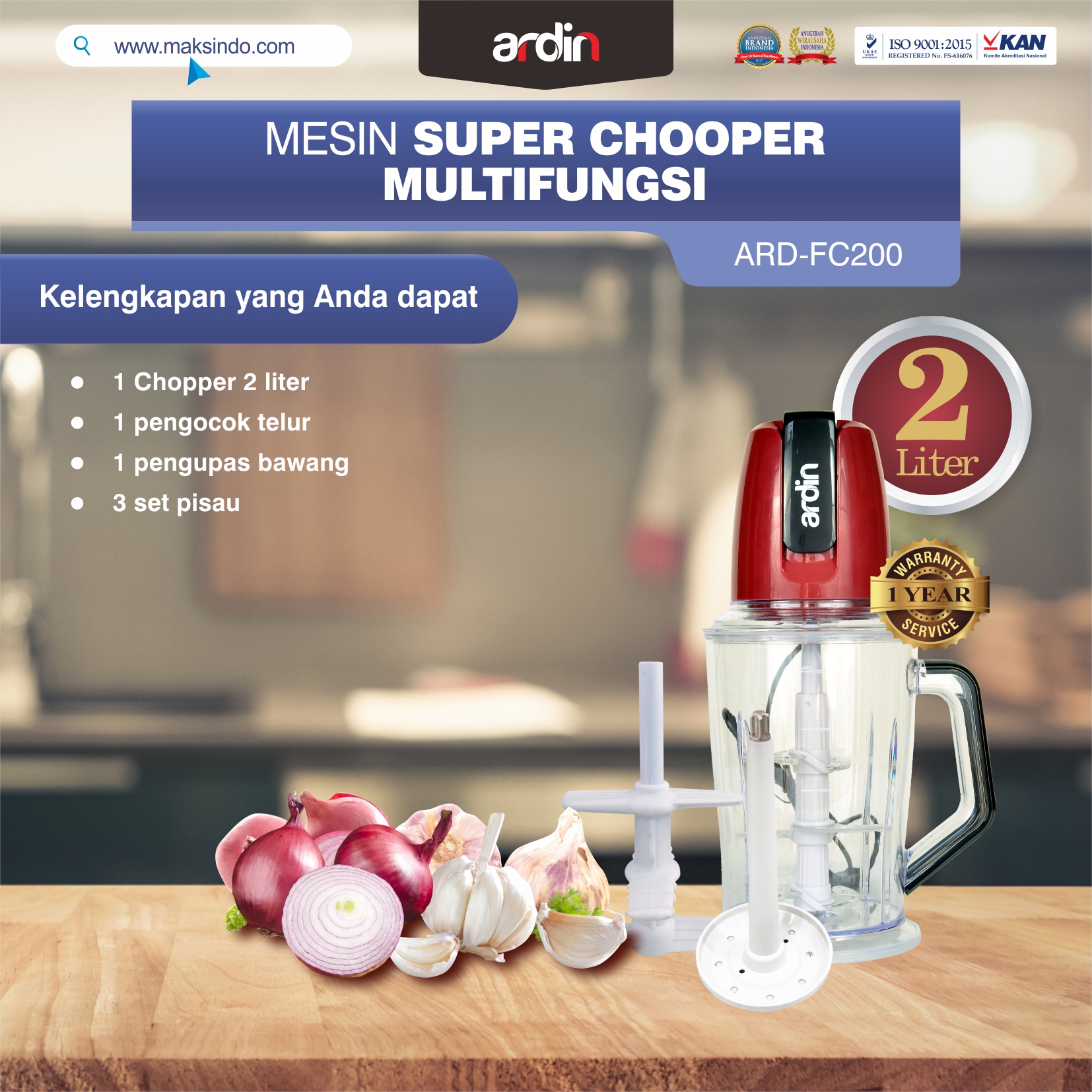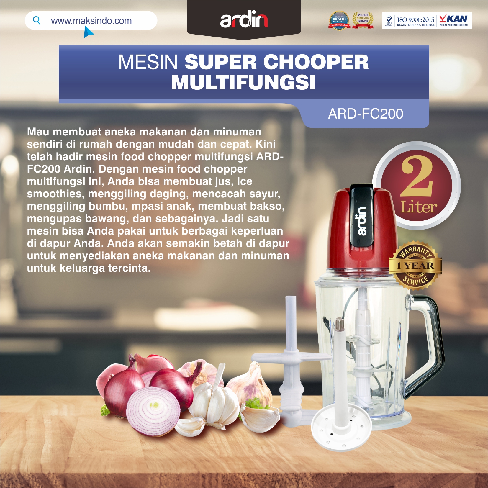 Home / Alat Dapur Modern / Jual Mesin Food Chopper Ardin Multi Fungsi ARD-FC200 di Solo