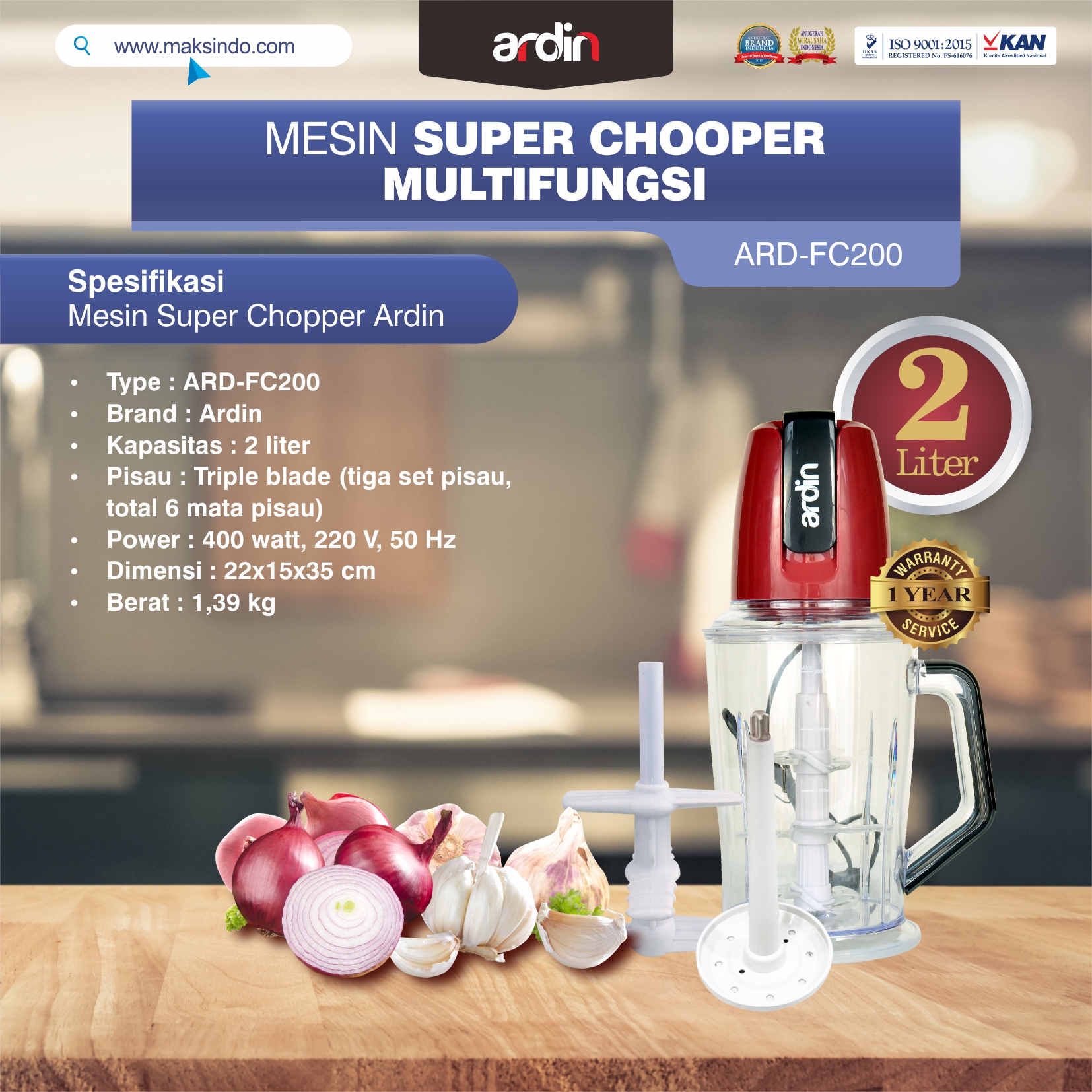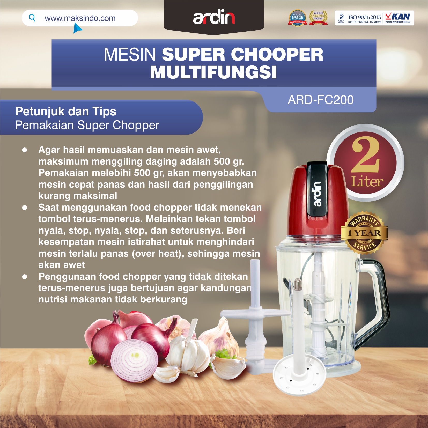 Spesifikasi Food Chopper Ardin